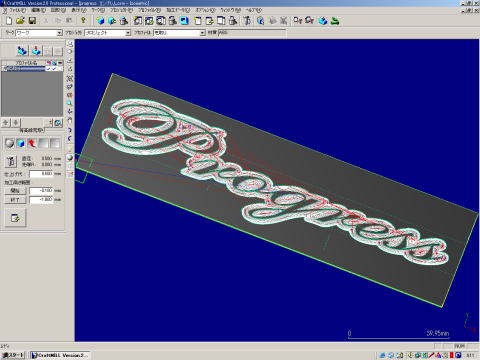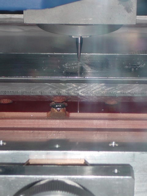 切削開始。今回は、フラットエンドミル0.5mmで切削。