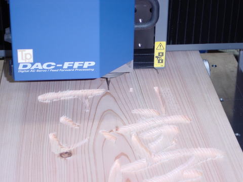 英文字部分を彫刻開始。