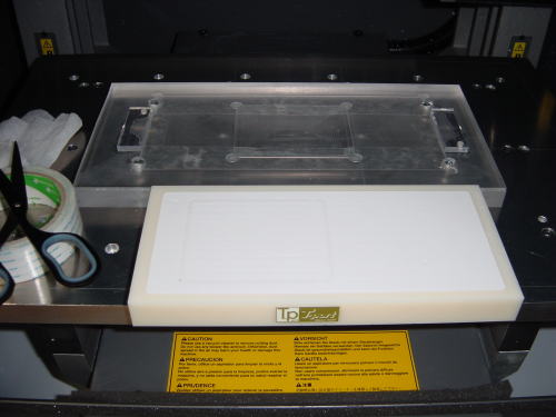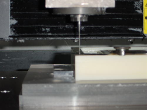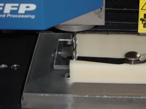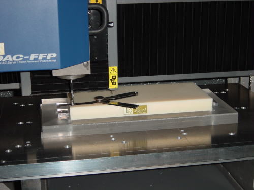 ワークを捨て板の上の両面テープで、固定したところ。